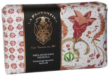 La Florentina GIARDINO SEGRETO Мыло Pomegranate & Neroli, Гранат и Цветок нероли 270 грамм. Коллекция: GIARDINO SEGRETO Collection. Растительное мыло с натуральными тосканскими ароматами. Обработанное вручную высококачественное сырье с конопляным мас