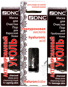 Активированный Уголь Маска для очистки пор для взрослой кожи 50мл DNC, Активированный Уголь Маска для очистки пор для проблемной кожи для тинэйджеров 50мл DNC, Гиалуроновая кислота гель 10мл DNC.